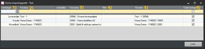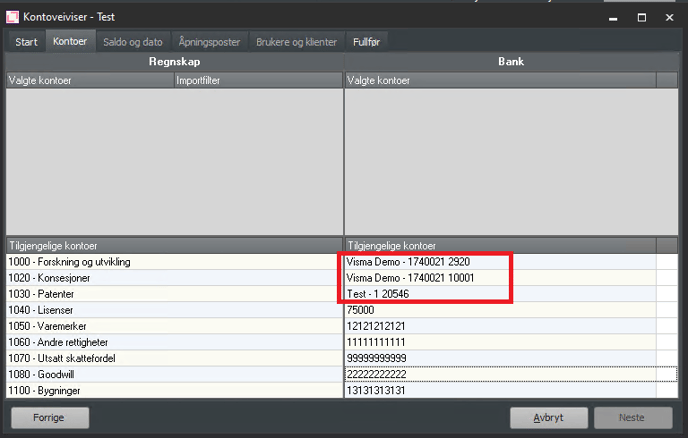 In this screenshot, we have chosen to retrieve 3 accounts from other clients in the same vbsys/Visma Business for the client named Test (shown above).