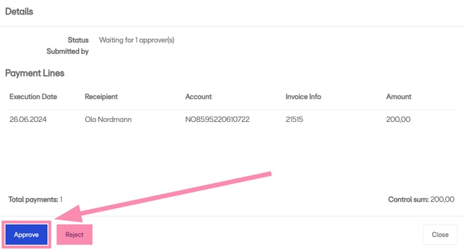 If you click directly on the payment, a pop-up window will appear. Verify that the payment is correct, then click “Approve.”