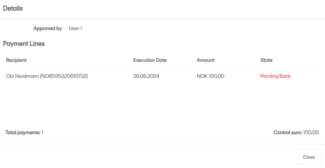 The payment will no longer appear under “Approval” because it has been sent to the bank.