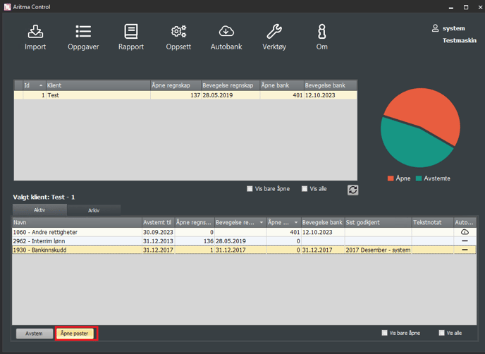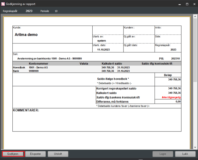 Select the desired account in the main view and click "Open entries". You will then see a window for approving the report.