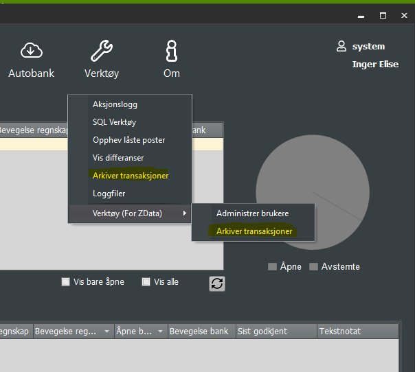 The Archive transactions option under "Tools (For ZData)" archives all clients. This function requires a password and is only available for Artima.