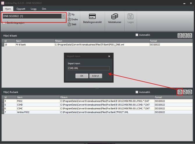 In Pay, choose the profile used for file import and add a new import line by clicking the plus (+) icon.