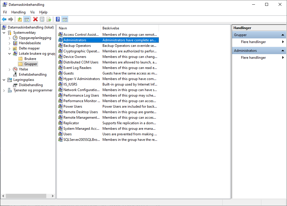 The service user also requires local administrator rights. This is done by adding it to the Administrators group under