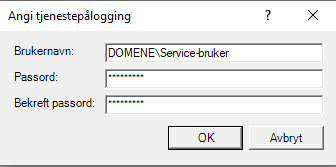 For server setup, the service user must be entered in the format