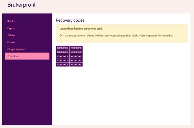After verification, you will be shown recovery codes. Save these codes for future use if you lose access to your device.