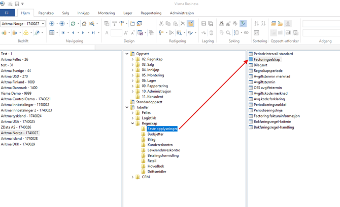 Path:Utforsker -> Tabeller -> Regnskap -> Faste opplysninger -> Factoringselskap.