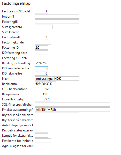 The configuration for incoming payments is done in the Factoringselskap table in Visma Business.