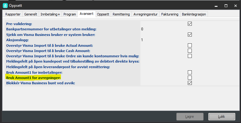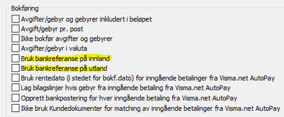 Here is the setup to display a single total sum in Visma Business when importing settlement returns from the bank:
