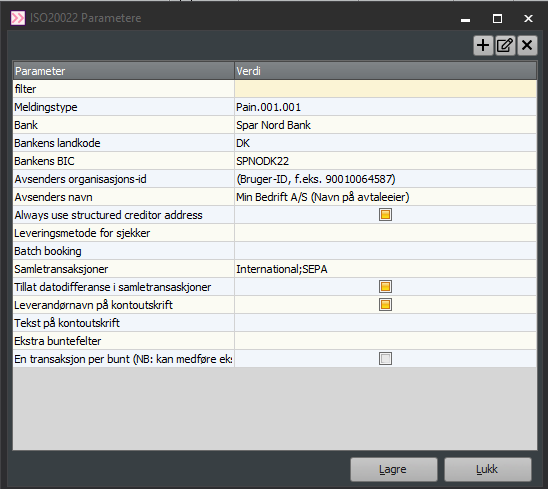 Batch booking: If the field is empty, the bank’s standard is followed. Can be set to true or false regarding whether to group transactions in the bank. Usage is bank-specific.
