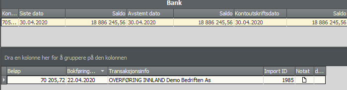 Åpne bankavstemming på aktuell konto.