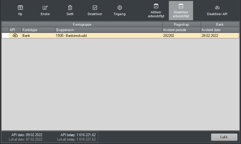 Via oppsett - administrer kontogrupper så ser du status på om koblingen mot bank er i orden.